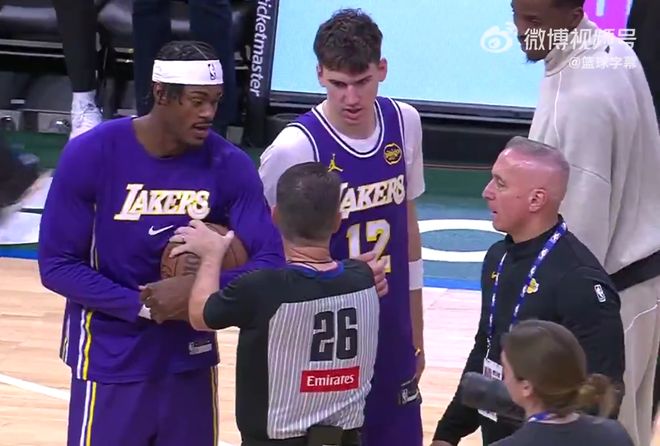 赛后,湖人全队跟裁判要球,希望他能够把球送给首秀的阿杜,范德比尔特把球紧紧地抱在怀中,但是裁判坚持上前将篮球抢走。