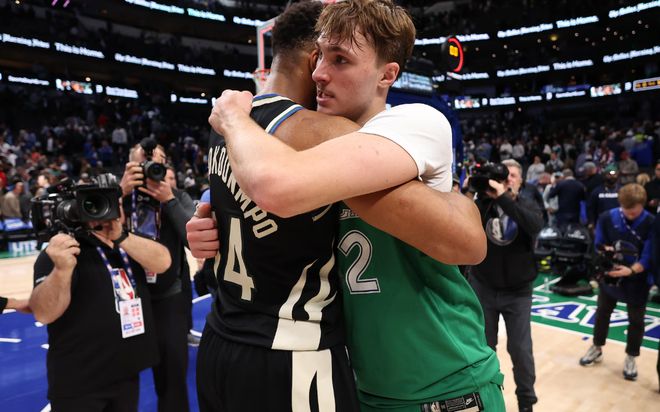 字母哥:以前基德不让我投三分,对独行侠这记三分送给他